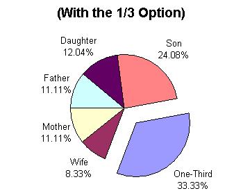 father or mother 1/6; wife 1/8; male child gets twice the share of female child
